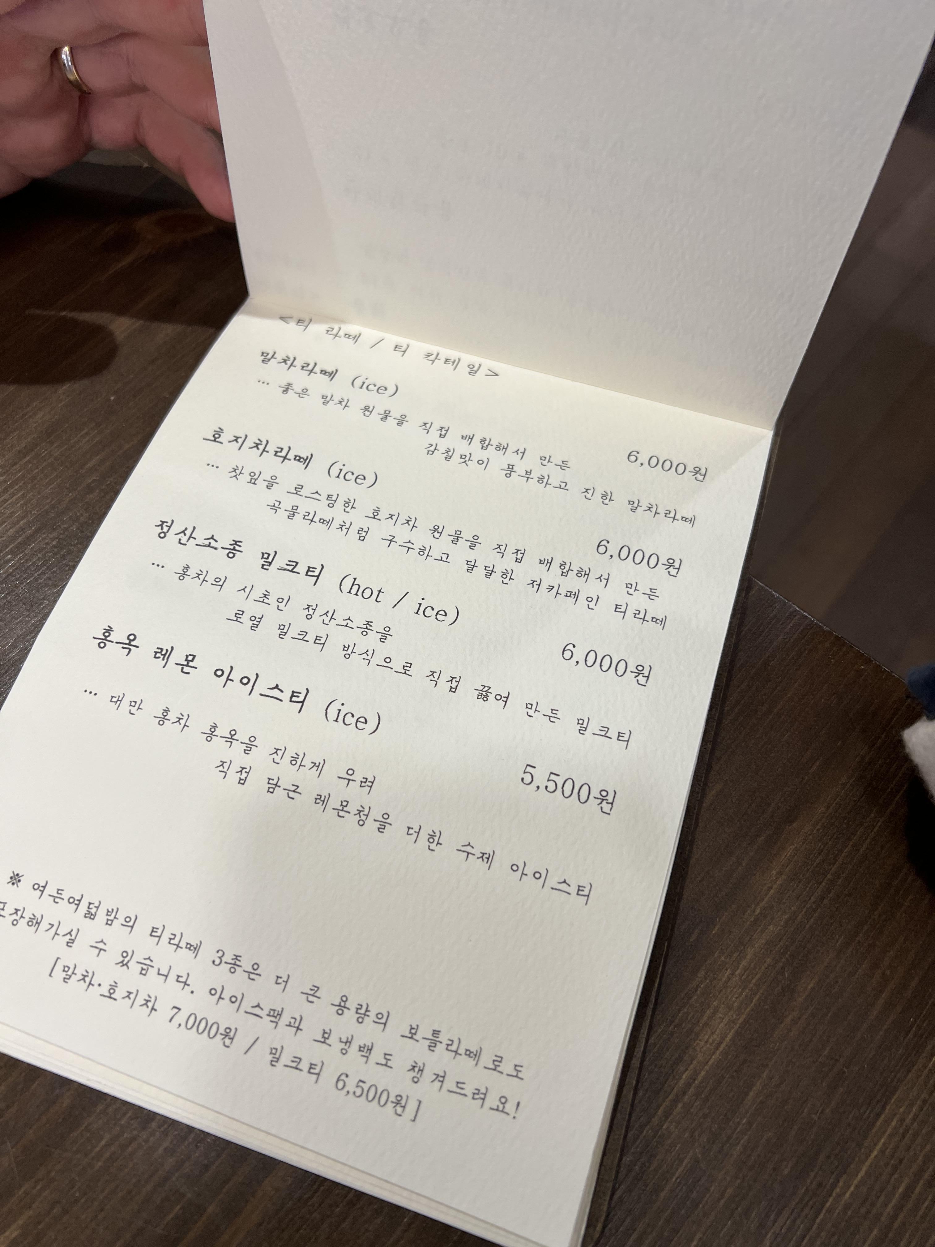 찻 잎을 우려마시는 기본적인 음료 외에도 말차라떼나 밀크티 또는 모히토 같은 다양한 음료들을 만나볼 수 있었습니다. 저는 따듯한 차가 마시고 싶어서 안계철관음을 주문했습니다.