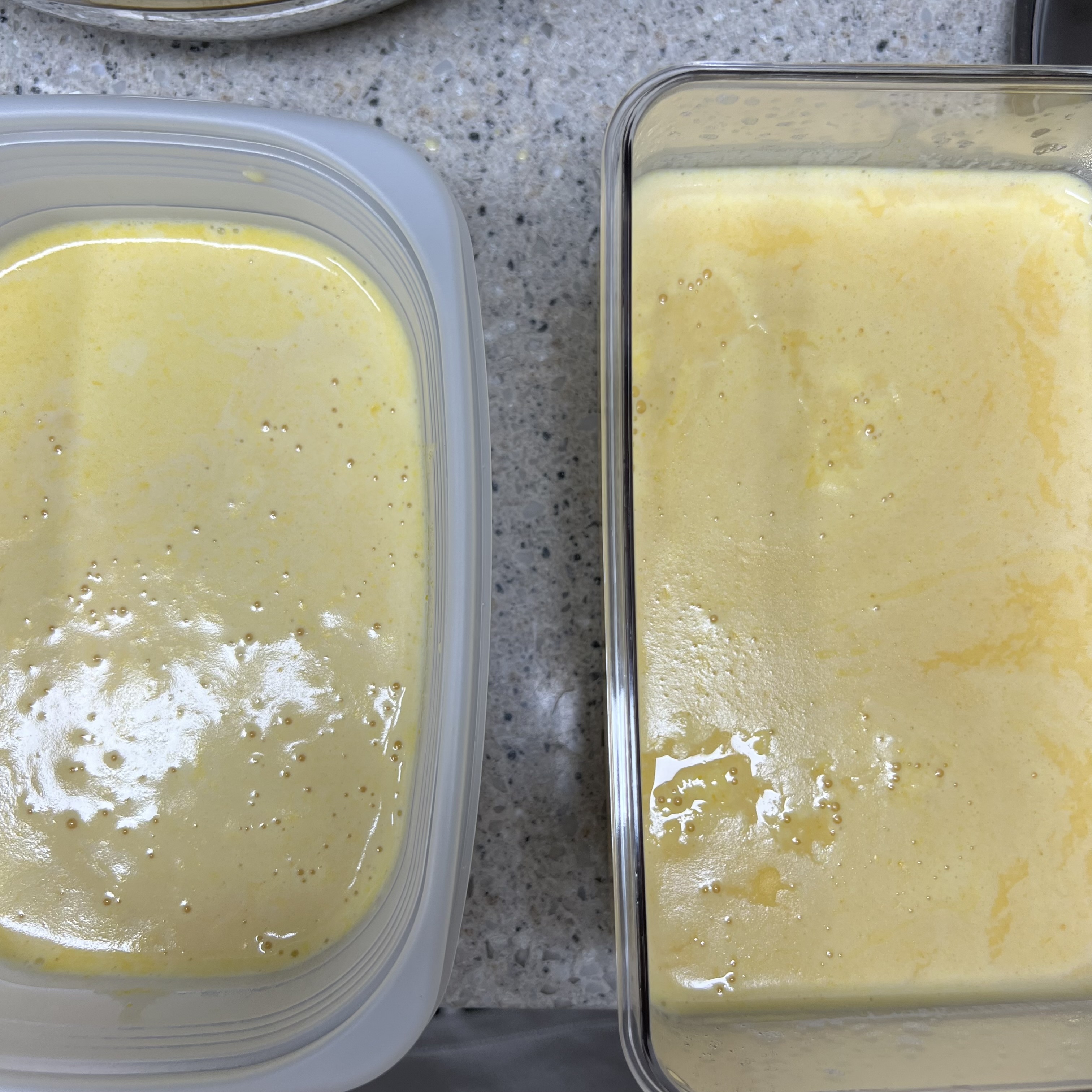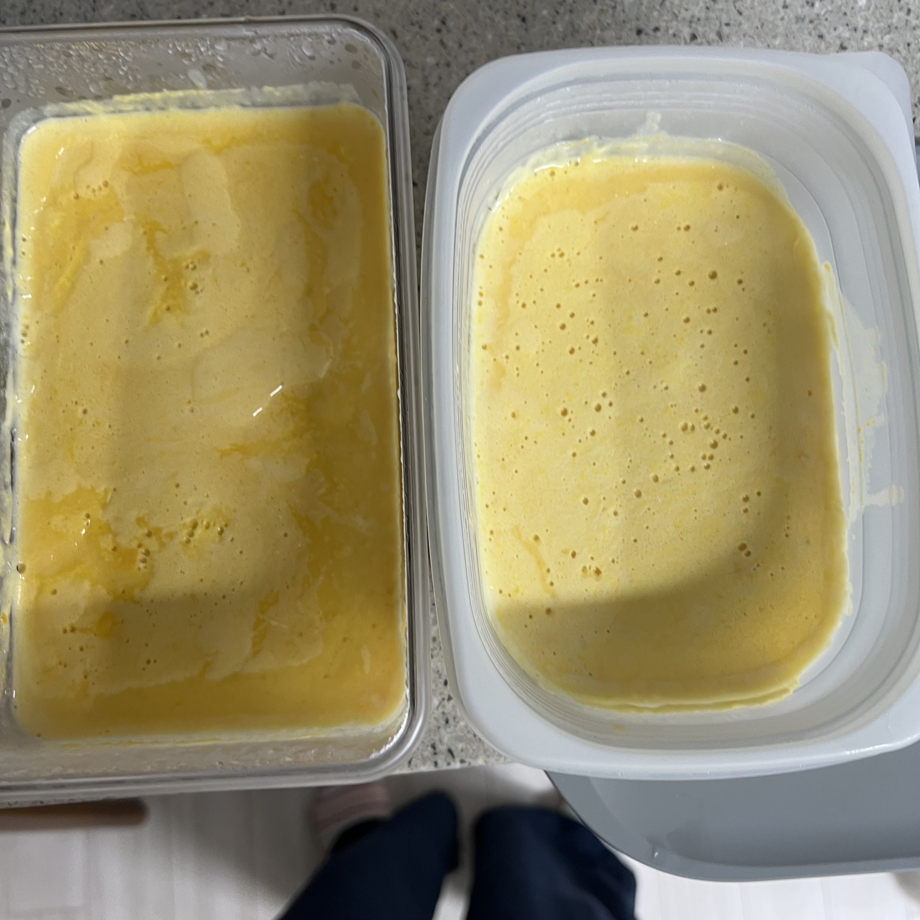 플라스틱 용기에 담았는데 다음부터는 유리 용기에 하려고 생각중입니다. 플라스틱에 뜨거운 내용물을 담으니 살짝 걱정이 돼서 .. 상온에서 뜨거운 열기를 좀 식힌다음에 냉장고나 냉동실로 이동해 굳혀줍니다. 냉장실에서는 5~6시간, 냉동고에서는 1~2시간이면 충분합니다.