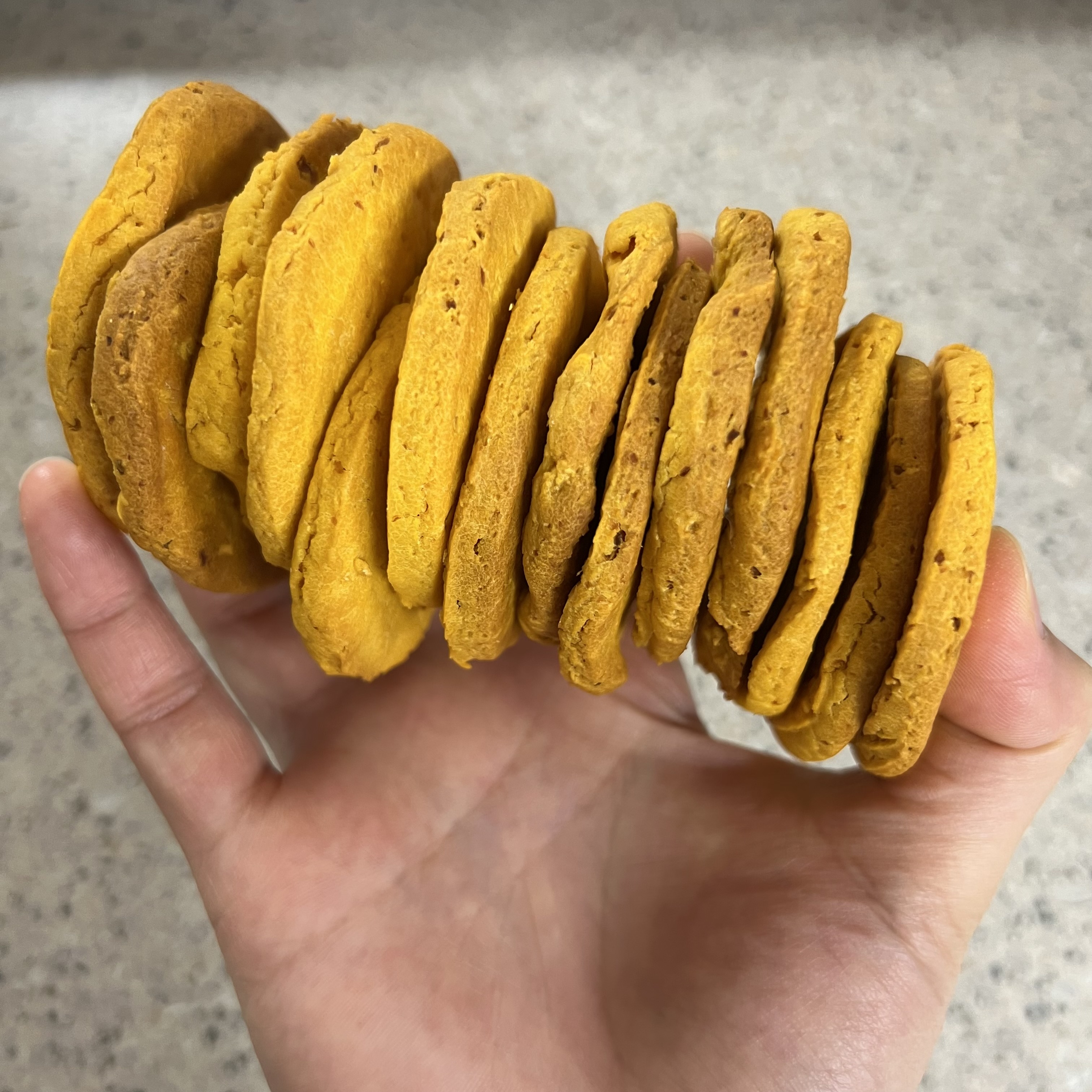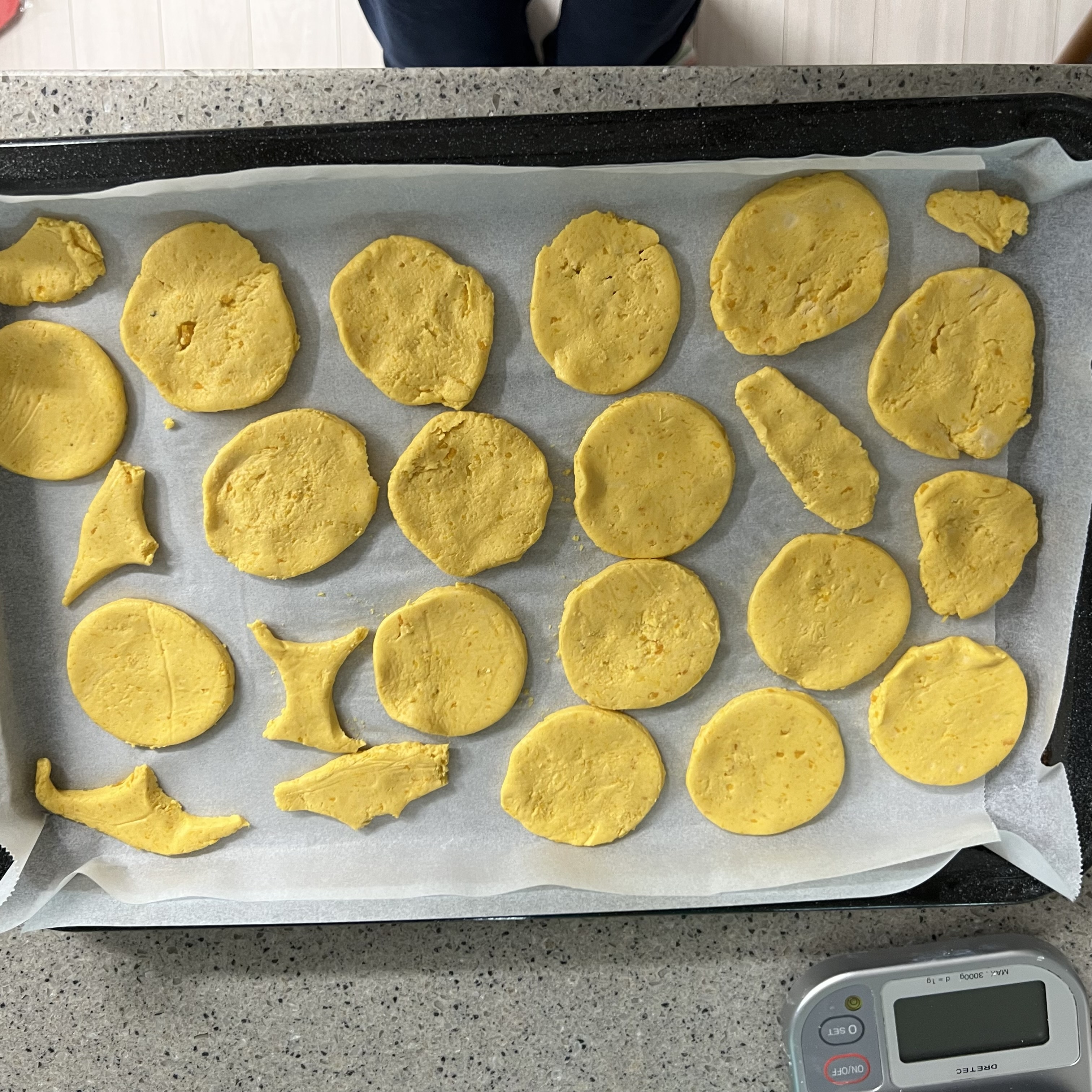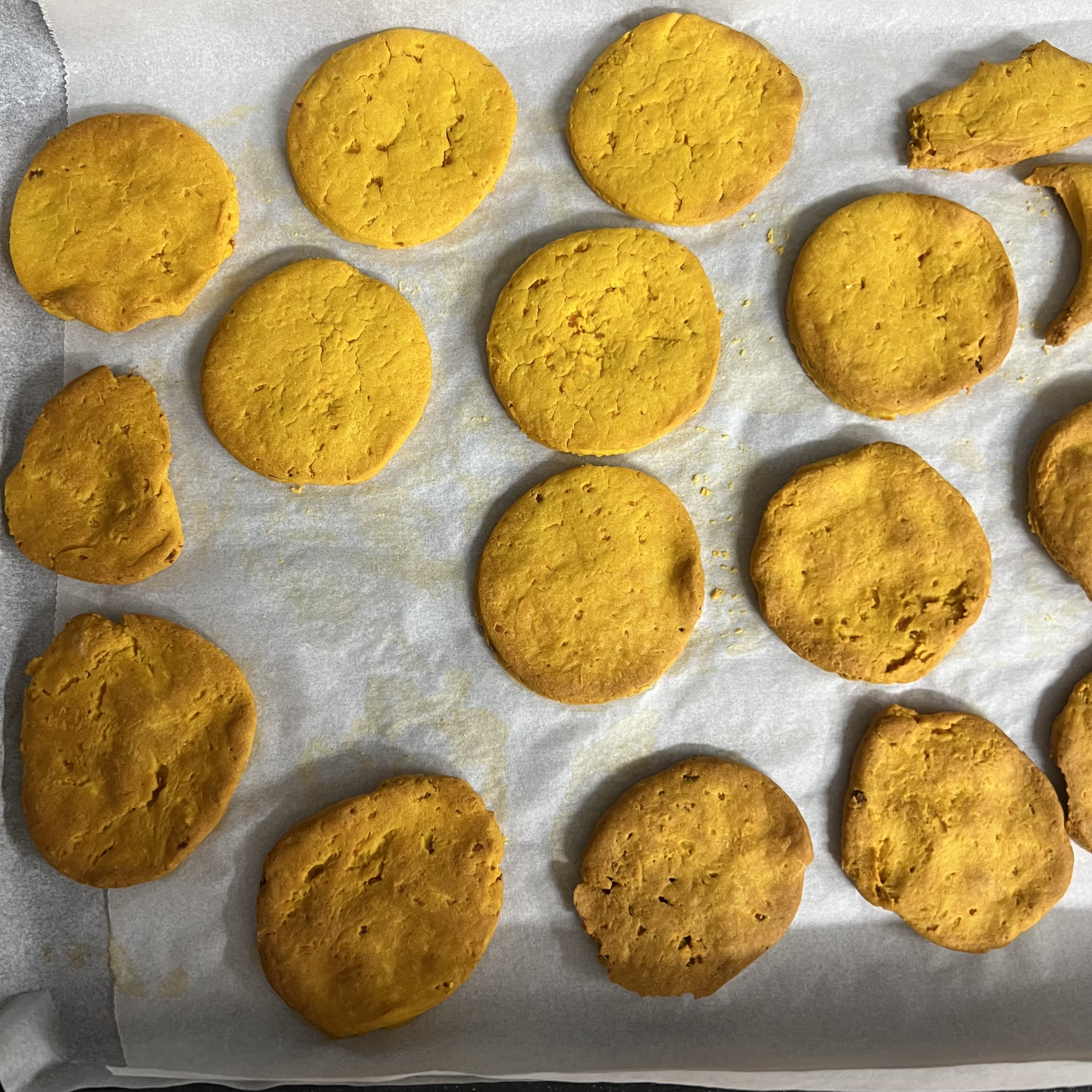 오븐 온도 170~180도에서 15분~30분 본인의 오븐 화력 정도에 따라서 구워주세요. 전 15분 구웠더니 말랑한 상태여서 몇 분 더 구워주었어요. 그랬더니 안쪽에 있던 쿠키들은 살짝 탄 것 처럼 되었네요. 저렇게 탄 것 같은 건 제가 먹었습니다. 사람이 먹을 수 있는 재료로 만든거라 저도 맛을 볼 수 있었어요. 단호박 맛이 은은하게 돌아서 다이어트쿠키 같았습니다. 남편은 맛이 없다고 한 입 먹고 안먹었네요^^ 충분히 식힌 후에 체리한테 주니깐 닭가슴살 만큼은 아니지만 맛있게 먹더라고요. 이 간식도 냉장에서 일주일, 냉동에서 한 달 정도 보관하면 되고 단호박대신 고구마를 넣어서 고구마쿠키로 만들어도 좋습니다.