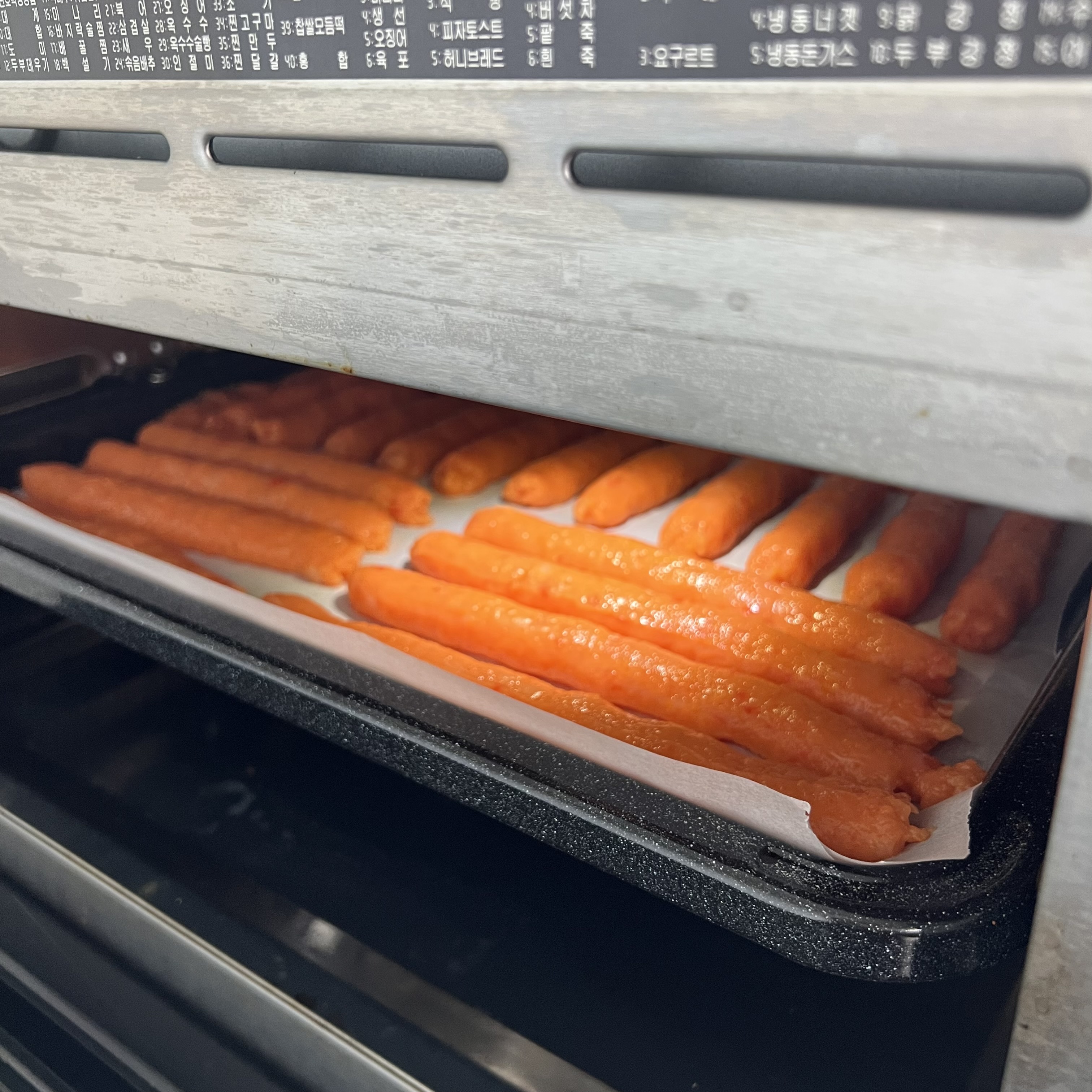 그런 다음, 건조판에 긴 모양으로 짜주면 되는데 저희집에는 건조기가 없기 때문에 오븐의 건조기능을 사용했습니다. 그래서 오븐판에 종이호일을 깔고 그 위에 길쭉한 모양으로 짜줬습니다. 온도는 70도 정도로 맞춰놓고 시간은 9시간~13시간 정도 맞춰주세요. 본인의 기계에 따라 다르기 때문에 중간 중간 진행사항을 봐가면서 가감해주세요. 전 일반 건조기가 아니고 내용물을 조금 굵에 했더니 건조시간이 더 길어졌습니다. 다 완성되고 나서 냄새때문에 난리치는 체리때문에 완성 사진은 찍지 못했습니다.