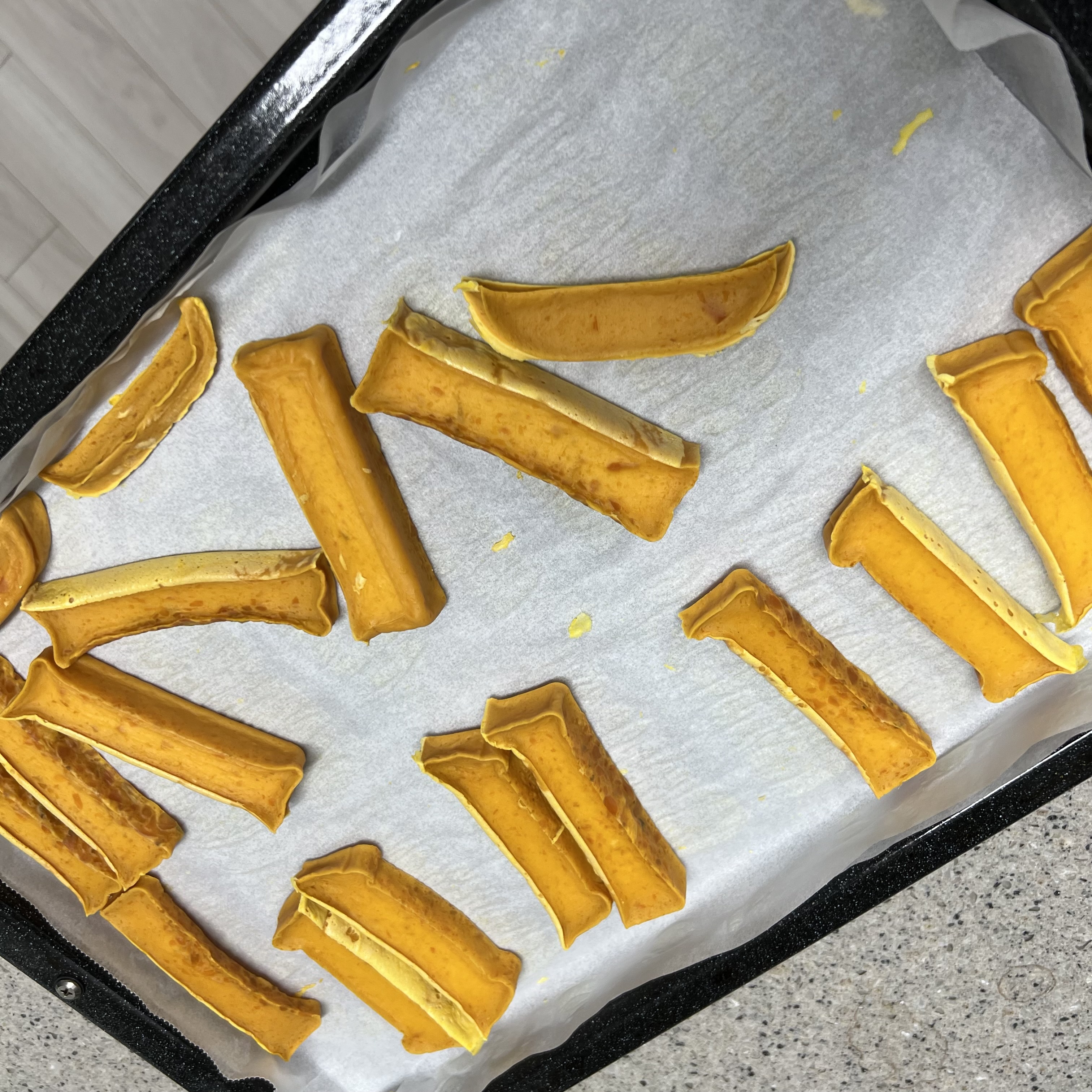 어디 가서 팔 거 아니니까 틀이 없다고 해서 상심하지 마세요. 그냥 칼로 네모 반듯하게 잘라도 강아지들은 좋아할 겁니다^^