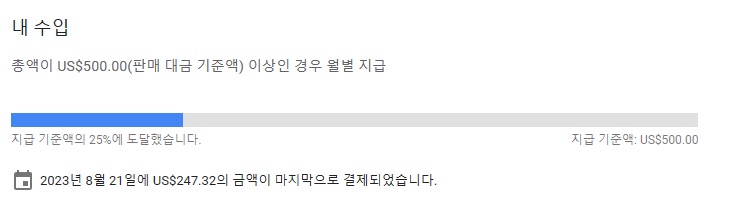 이 생각이 갑자기 들자마자 얼른 애드센스 홈페이지에 들어가 지급 받는 수익 금액을 100달러에서 500달러로 올려버렸답니다. (십년감수 ;;;)