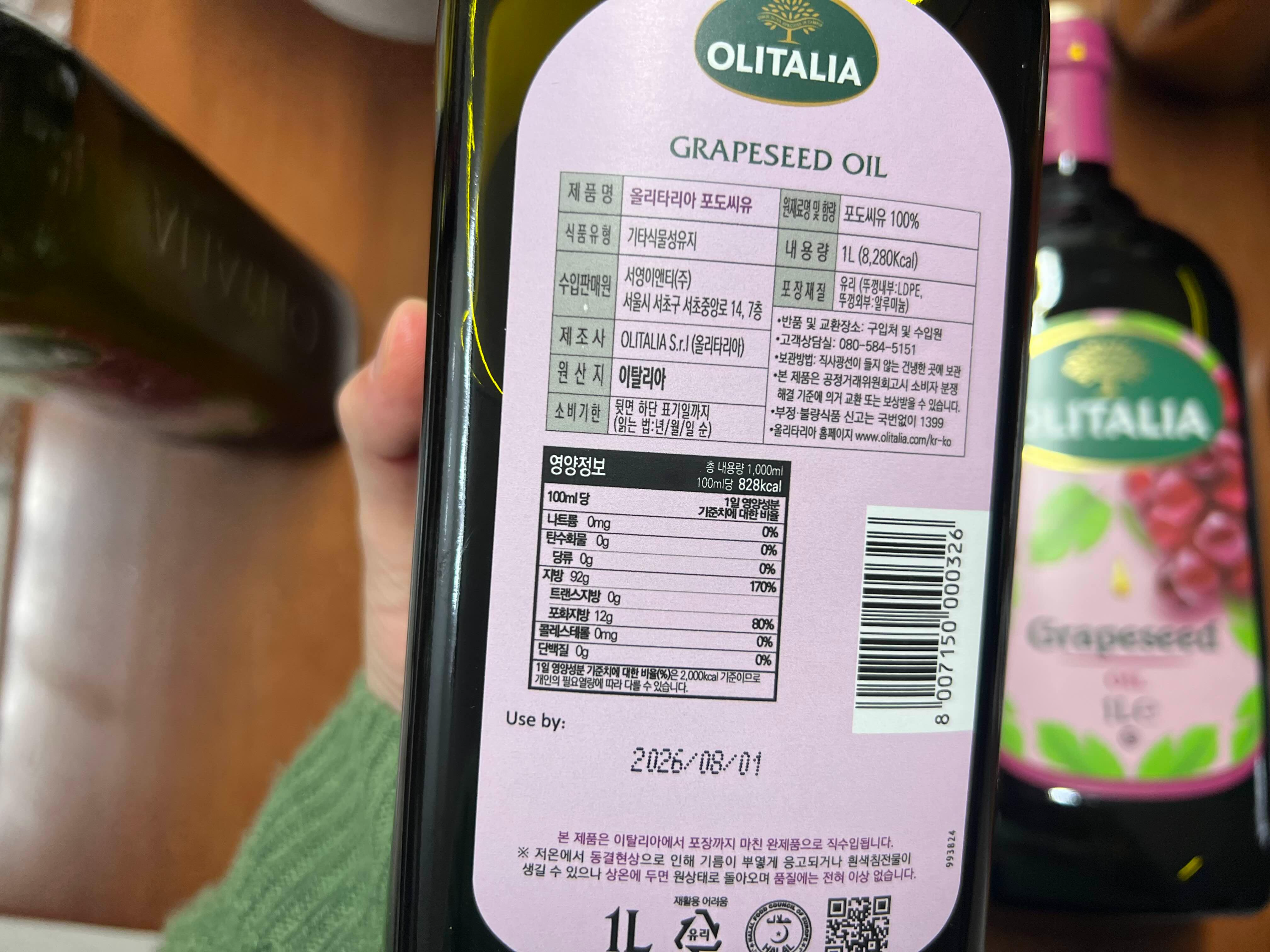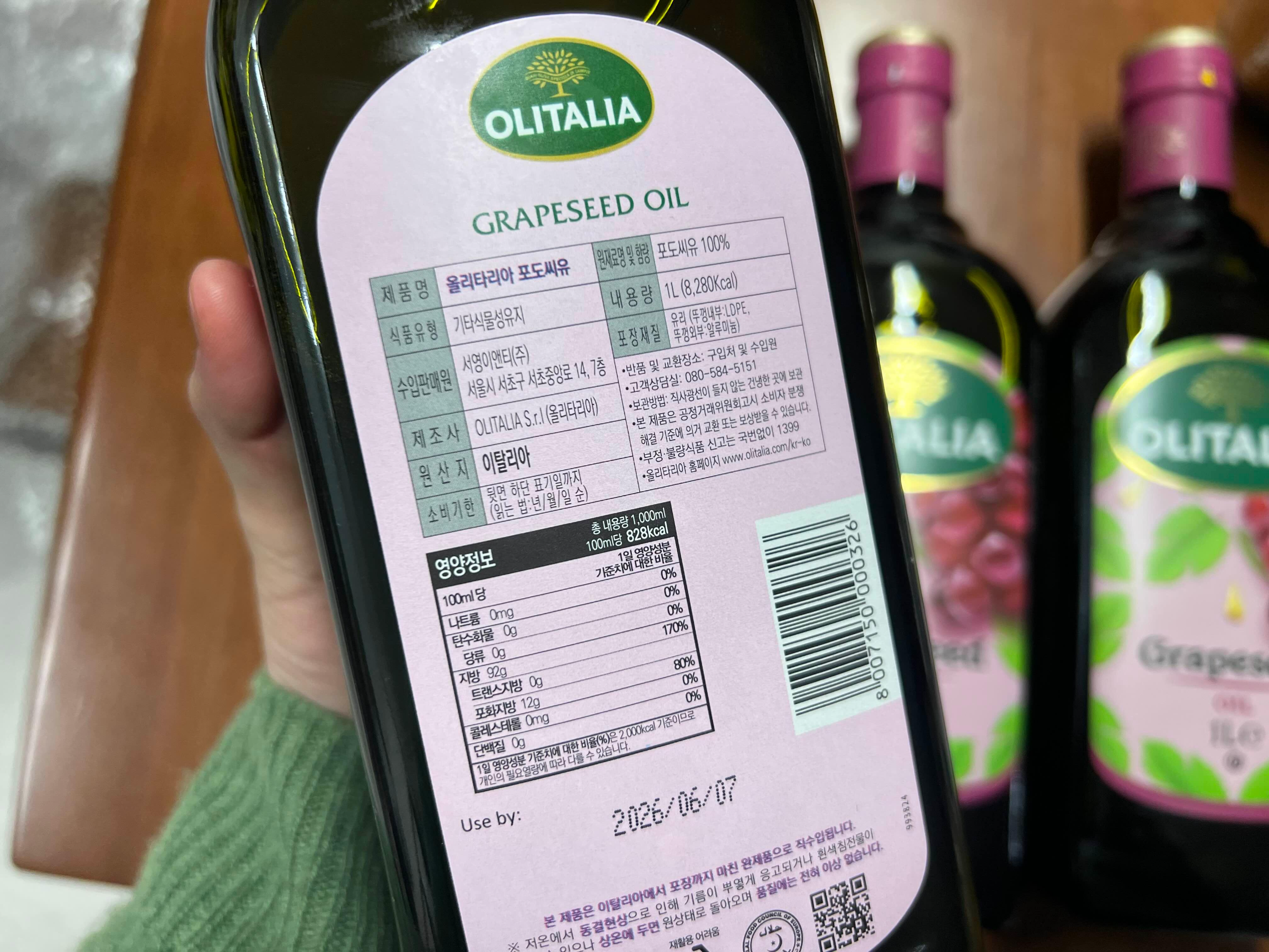 34,900원에 구매한 올라타리아 포도씨유 임박할인 상품입니다. 임박할인이라 유통기한이 엄청 짧을 거라고 생각했는데 의외로 26년도 까지여서 다행이었습니다. 이거는 임박할인이 아닌 것 같은 느낌 ..